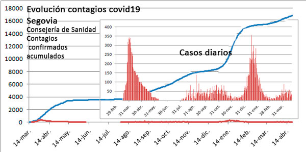 La provincia de Segovia registraba en las últimas 24 horas 36 nuevos contagios, un leve incremento sobre a jornada anterior. Los brotes activos se incrementan en 3, de 63 a 66. Un día más hay que celebrar que no hay fallecimientos si bien se mantiene sin cambios la presión hospitalaria, 30 ingresados en planta y otros 15 en UCI.