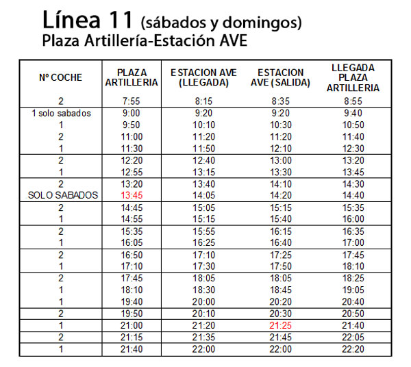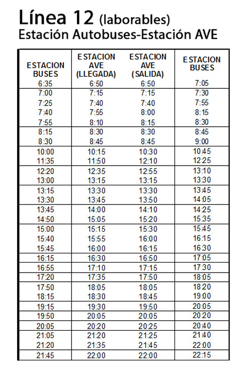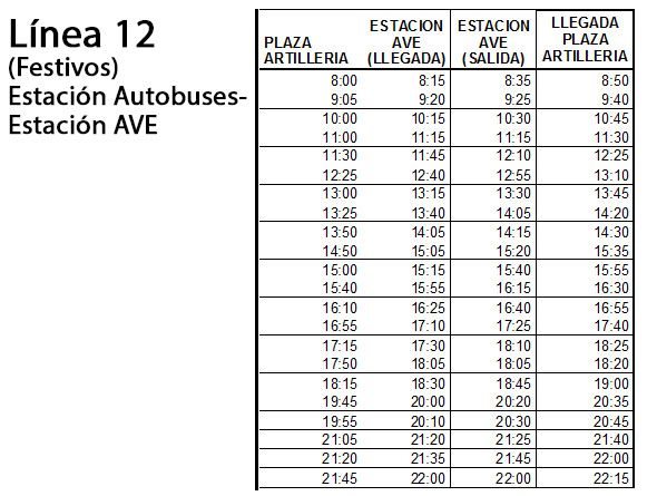 L12 Est. Bus-Estación AVE (sábados y domingos)