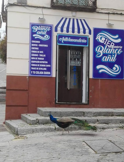 Pensaba que no pero resulta que el pavo real es un plato sustancioso. Leo en la Wikipedia que en la antigua Roma no había banquete serio sin pavo cristatus. Dice que es granívoro. Come grano e insectos pequeños, no menciona torreznos ni ataques a humanos. Cuando entra en celo maúlla como un gato (no hace el gloglogló, de su primo el guajalote, el pavo americano, el de Cascajares, vaya). Por lo demás, no es especialmente molesto, más allá de algún frenazo de conductor desavisado que se lo encuentre de frente y se diga “¿coño es esto?”. Y crucemos los dedos. Porque eso sí, Houdini no se altera por nada ni nadie. Siempre calmo, serio y envarado. Si alguien se le encara el da un rodeo sin perder la distinción. Si hay un coche no creas que apremia el paso. No Houdini, que por algo es de estirpe real, con privilegio para patear por el medio de la calle. La acera, para el populacho.