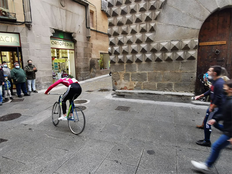 Con el único incidente de un corredor que sufrió una caída en el siempre peligroso giro en el Azoguejo —sufre diversas roturas de huesos y permanece ingresado en el hospital— la mañana estuvo repleta de animación y contó, también un año más, con la presencia del exprofesional, Pedro Delgado, quien, con humor, responsabilizó a la edad el hecho de que su ascenso por la calle Real fuera sólo de unos metros.