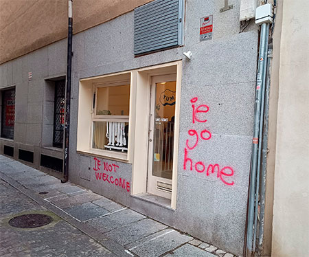 • Exactamente, pintadas racistas que sobran en nuestra ciudad por mucho que los que las hayan hecho sean de izquierdas (casi seguro que lo eran porque esas son sus ideas).