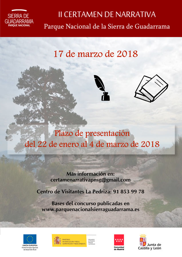 Por segundo año, el Parque Nacional de la Sierra de Guadarrama, con el objetivo de promover e impulsar el mejor y mayor conocimiento de la riqueza natural, cultural y humana que encierra este espacio natural, convoca un nuevo Certamen de Narrativa.