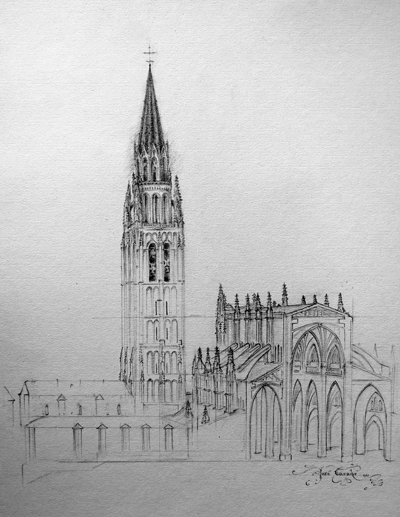 Y eso que Segovia no carece de experiencia en lo tocante a patrimonio masacrado por el fuego. 18 de septiembre de 1614, escribe Colmenares: “cerró la noche con mucha oscuridad y vientos: y cuando nuestros ciudadanos fatigados y lastimosos, miraban el chapitel de la torre abrasado en media hora, comenzaron a arder los enmaderamientos de los tejados del templo”. Un rayo impactando sobre la torre desató un voraz incendio que rápidamente se propagó por las cubiertas de la Catedral aún en obras. La peor parte se la llevó el campanario, terminado en 1568 -como recuerda el ilustrador gráfico José Casado– y que en aquel tiempo estaba rematado por un chapitel piramidal de caoba americana que convertía a la de Segovia en la torre más alta de España, 108 metros. Debía ser de diseño muy parecido al que Viollet-le-Duc, padre de la restauración medievalizante, aplicó en 1844 al pináculo de Notre Dame, ya fatalmente perdido.  “La torre en construcción puede verse gracias al dibujante holandés del siglo XVI Anton Van Den Wyngaerde pero, ¿qué fue de aquella torre, ya terminada, de la que no se conservan trazas ni dibujos?”, se pregunta Casado, que aporta su particular visión. Pocos años después, en lugar del remate destruido,  Juan de Mugaguren colocó la actual cúpula de estilo herreriano y chapitel de piedra.