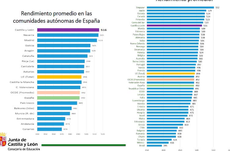 Tan comprensible que no diremos nada de la regionalización. No se si ven la trampita, en los gráficos Castilla y León se compara con Alemania, como si en Alemania no hubiera también regiones mejores o peores. Puestos a compararse, habría que hacerlo con las diferentes regiones de cada país. Es igual. También ha pasado que, en el extremo opuesto, algún consejero (el de Andalucía) anda diciendo que la culpa del zoquetismo regional es… ¡de Francisco Franco!Dejémoslo. Siempre he pensado que la educación pública en Castilla y León es sorprendentemente buena. Somos pioneros en algunos programas (por ejemplo el bilingüismo, o las clases de refuerzo para alumnos en problemas, que tan buenos resultados han dado). A la vez tenemos docentes que son como apóstoles del conocimiento, y pienso en esos ejemplares maestros de matemáticas que voluntariamente organizan que si olimpiadas, talleres especiales de difusión, y como ellos tantos otros.
