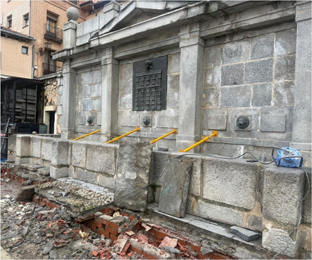 Las obras, que ejecuta la empresa García Muñorreyo Construcciones, consisten en la retirada de los peldaños y las losas que conforman la escalera que rodea esta fuente para sustituirlos por otros nuevos. Estos nuevos elementos estarán debidamente impermeabilizados y forrados con un material específico que permitirá evitar filtraciones de agua y la aparición de goteras en el inmueble.
