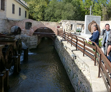 Hay otro segundo problema. Paralelamente al estudio de anegación se ha investigado el fenómeno de filtración de agua en los canales interiores del complejo que mueven las ruedas hidráulicas. Aún con la compuerta de entrada del agua cerrada el canal recibe agua. El estudio ha puesto de manifiesto que esta filtración no es de origen subterráneo, sino que procede del azud. Cuando el Eresma va más cargado aumenta esa filtración. A partir de los 20m3 se rebasan en esta zona los umbrales de seguridad. Sabiendo los caudales drenantes, estas inundaciones por filtración se pueden combatir aplicando bombeos (actualmente hay dos bombas) cuando se superan los niveles críticos y coordinando la apertura y cierre de las compuertas de entrada y salida.