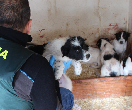 En el desarrollo de esas actuaciones, en un municipio de Segovia se localizaron una caseta donde se albergaban perros de los empleados con fines cinegéticos. Desde los exteriores de este recinto, los agentes observaron comportamientos anómalos de dos personas que manipulaban un perro. Alertados por los chillidos del animal, procedieron a inspeccionar el interior del inmueble, donde localizaron a siete perros de corta edad con sangrados recientes, comprobando que se les había seccionado parte de las orejas y rabos.
