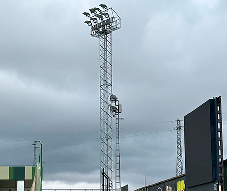 Las torres de iluminación ya están completamente levantadas y con toda la instalación prácticamente concluida. Se ha mejorado y adecuado el espacio para personas con movilidad reducida y habilitado una nueva zona para Cruz Roja y se están llevando a cabo trabajos para mejorar y adecuar el espacio destinado a los medios de comunicación. Se están terminando de instalar luces led en las escaleras de la grada principal y la próxima semana se realizará el ajuste de los focos.