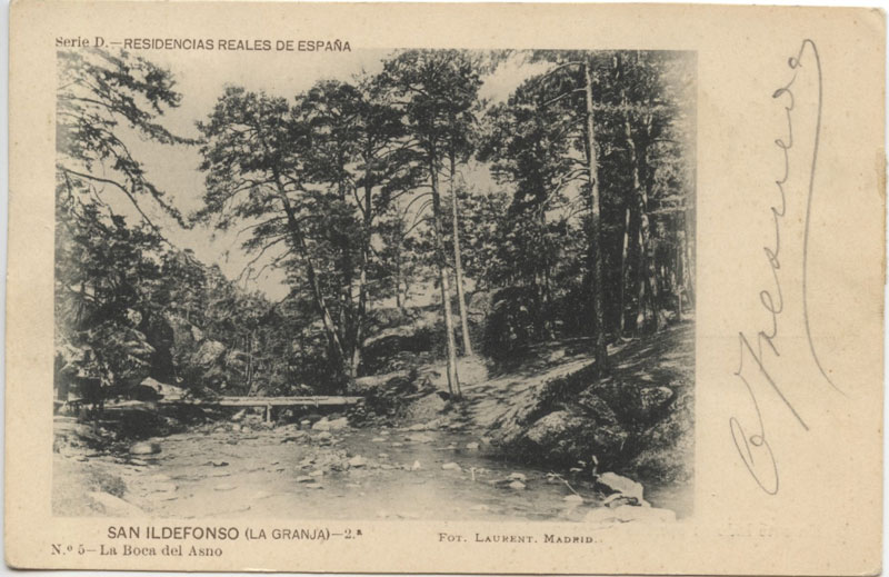 Las tarjetas postales que acompañan este relato son algunas de las vistas, impresas por distintos editores, dedicadas a la Boca del Asno y las riberas del incipiente río que fluye por el valle de Valsaín, camino de convertirse en Eresma.