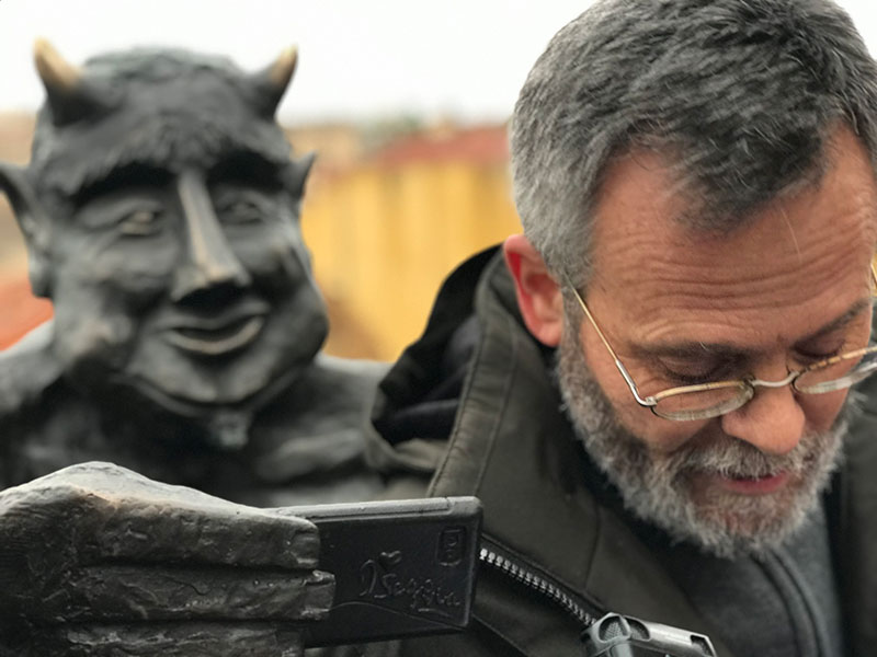 El autor de la escultura hizo varias referencias a las diferentes representaciones del demonio que existen por el mundo desde hace siglos, mientras que aseguró que en su obra ha tratado de reflejar a “un pobre diablo venido a menos con algunos años encima y muchos kilos de más. Una caricatura que si a alguien debería ofender es al propio diablo”, un personaje “madurito y de buen perder que ni conquistó el alma y los favores de la moza segoviana ni consiguió arrebatar a los romanos el mérito de la construcción del Acueducto”.