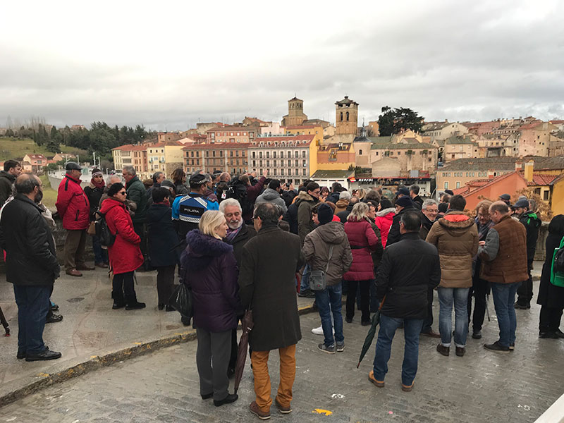 El acto, al que se han acercado numerosos ciudadanos, ha permitido descubrir la polémica escultura que refleja la figura de un demonio rechoncho que evoca al de la leyenda que atribuye la construcción del Acueducto al mismísimo lucifer en su intento de conseguir el alma de una moza local. El personaje, sentado en la barandilla de piedra, sujeta resignado el último sillar de la Puente que, según la misma tradición, nunca llegó a colocar.