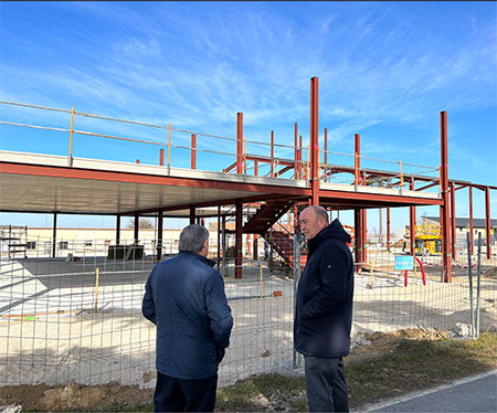 Hasta la fecha, se encuentran colocados los pilares del edificio, hasta la altura de coronación, y se están colocando los paneles prefabricados de cerramiento de fachada, con una ejecución de obra del 21% aproximadamente.