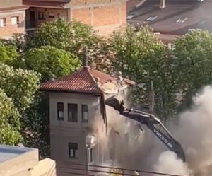 El derribo del “chalet de los Rueda”, en la finca Villa Estrella, construida en 1925 con la firma del arquitecto Manuel Pagola y situada en Ezequiel González ya se ha ejecutado. Una gran máquina ha iniciado los trabajos de demolición a primera hora de la mañana de este viernes y en sólo unas horas ha convertido la casa en un montón de escombro ante la mirada curiosa de los viandantes por la zona.