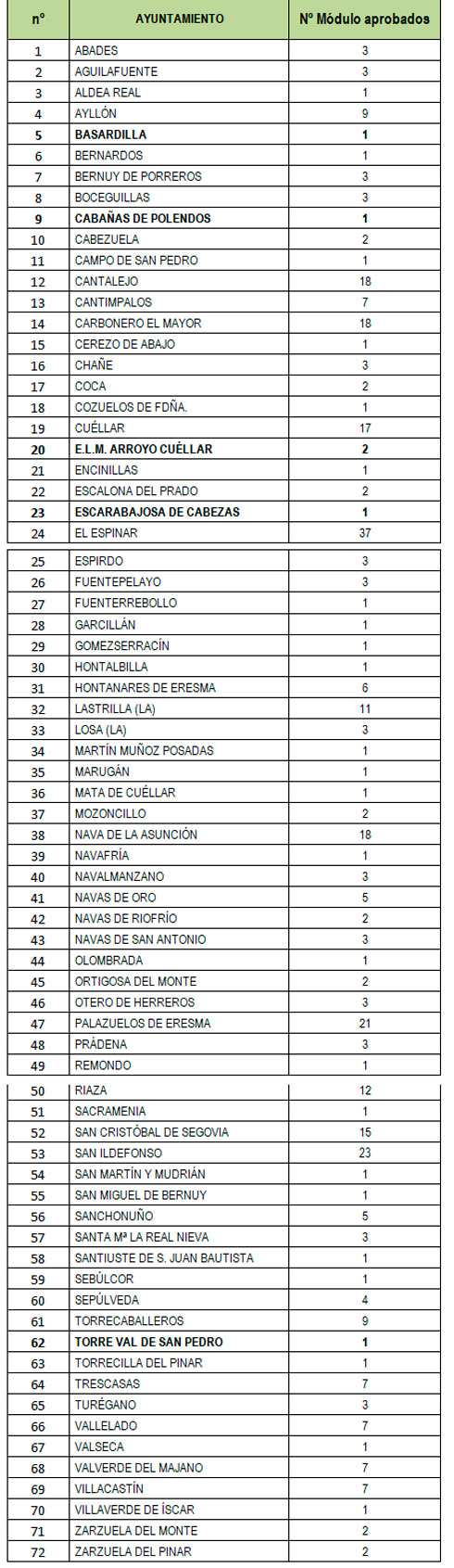 El Espinar con 37 módulos de escuelas deportivas es el municipio que más oferta tendrá, seguido del Real Sitio (23), Palazuelos (21) y Cantalejo, Carbonero y Nava con 18, respectivamente