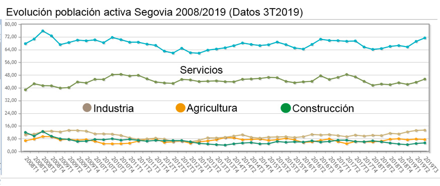 Los datos de la Encuesta de Población Activa relativa al tercer trimestre del año reflejan que 2019 está siendo un buen año para el empleo en Segovia. Y es que si en el contexto nacional los datos denotan una clara ralentización de la creación de empleo, en la provincia de Segovia indican lo contrario. El mercado laboral crece.