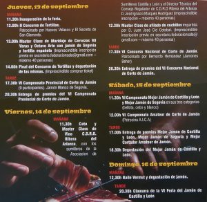 Hasta el próximo 16 de septiembre, medio centenar de empresas, la mitad del sector chacinero, participarán en la VI Feria del Jamón, organizado por la Asociación de Camareros de Segovia. Son cuatro jornadas con el jamón por protagonista, que tendrá su punto álgido la mañana del sábado con el campeonato de mejor jamón de Castilla y León y mejor jamón de Segovia, en sus categorías bellota, cebo y blanco. No será el único concurso este año. El jueves, a partir de las 12:00, la avenida Acueducto acoge el concurso de tortillas (patrocina Huevos Velasco y el Secreto de San Clemente), en tanto que por la tarde se celebrará el campeonato de corte de jamón. Hasta la clausura de la feria, el domingo 16 de septiembre, catas, máster class, entre otros, de mantenimiento de cuchillos, degustaciones, además de la posibilidad de compra de productos artesanales en las carpas ubicadas en el céntrico paseo segoviano.