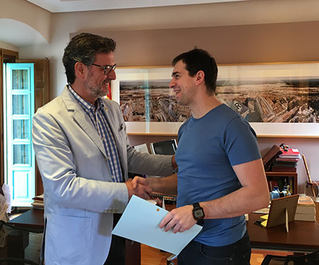Una vez reformado el espacio y adecuado a sus nuevas necesidades, Restaurante la Fundición ofrecerá a los clientes una cocina de mercado, cocina de la tierra que incluirá horno de asar. En la imagen inferior, Aníbal Herrero y José Luis Vázquez, alcalde del Real Sitio, rubricando el acuerdo de alquiler.