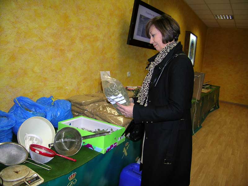 El teniente coronel Ramírez muestra a la subdelegada del Gobierno, Pilar Sanz, las drogas aprehendidas.