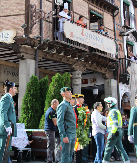 175 años no se cumplen todos los días. La Guardia Civil se creó en marzo de 1844 y ya en octubre de ese año abría cuartel en Segovia, en el convento de San Juan (recién desamortizado,  que volvería a los padres carmelitas en 1874) y con 37 agentes, corriendo los gastos de instalación por cuenta del ayuntamiento.  El responsable del Benemérito Instituto en Segovia, teniente coronel José Luis Ramírez, decidió dar boato a la efeméride trasladando al Azoguejo la parada con motivo del Pilar, patrona del cuerpo.  A tenor de la participación ciudadana, con miles de vecinos y turistas siguiendo la ceremonia, hizo bien. Multan bastante, sobre 3.000 sanciones de tráfico, dijeron, a pesar de lo cual la gente los adora.