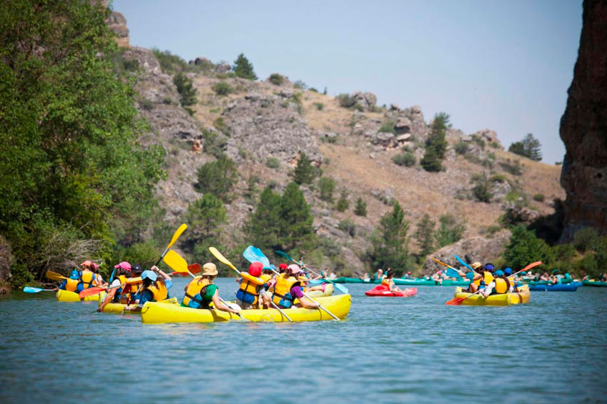 Bajan aguas turbulentas en las Hoces del Duratón. Lo que empezó en los años 80 como una actividad ecológica para conocer por dentro y en piragua el parque natural ha terminado deviniendo un verdadero motor económico para la zona. En la actualidad hay 9 empresas, con licencia para 16 piraguas por empresa, pero la realidad es que no hay más que asomarse para ver que hay empresas con 40 o más embarcaciones. No se respetan los turnos ni los cupos de 8 embarcaciones con monitor. Se ofrecen rutas exprés de 1 hora y lo cierto es que hay fines de semanas que lo que debiera ser un sosegado parque natural parece Benidorm. “Se ha salido de madre”, explica el empresario (Andatura) Ángel Luis Carreras.