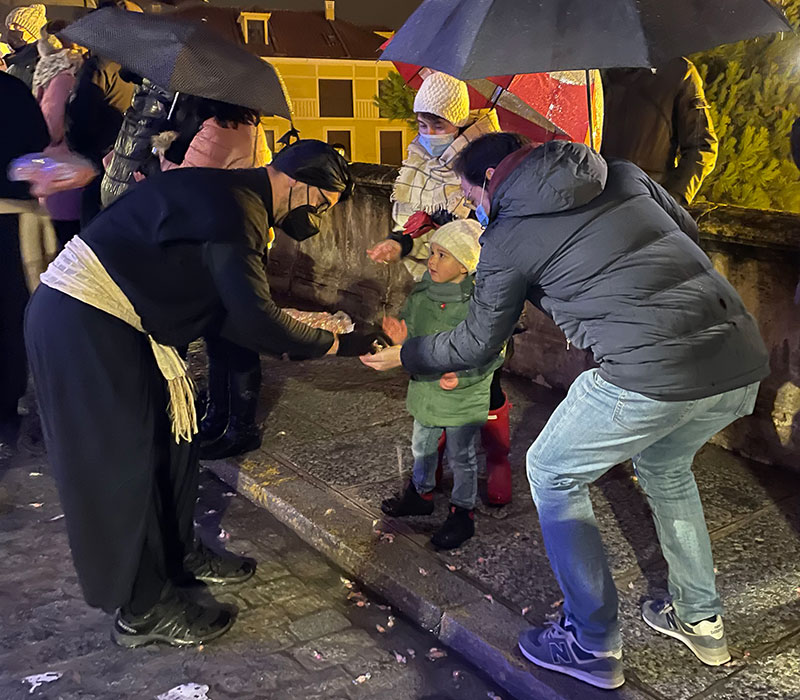 Por otra parte, el chubasco de agua-nieve tampoco impidió las cabalgatas organizadas en diversos municipios de la provincia. En La Granja, por ejemplo, llegaron en un mágico camión ambientado en el mundo del cine si bien sin el acompañamiento de otras cabalgatas, por los positivos de covid entre los pajes. En Cuéllar condujeron clásicos Wolksvagen “Escarabajo”, mientras que los de Oriente aún tuvieron tiempo de pasar en algún momento del día por decenas de municipios de Segovia antes de comenzar el reparto masivo de regalos.