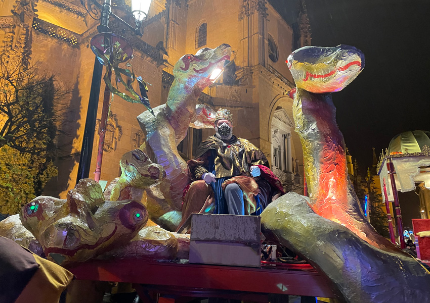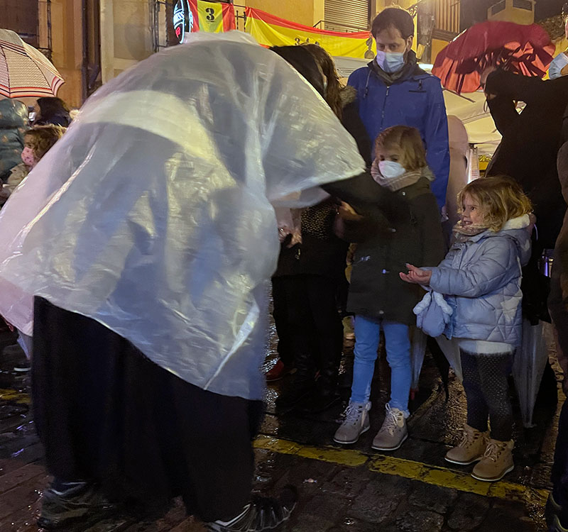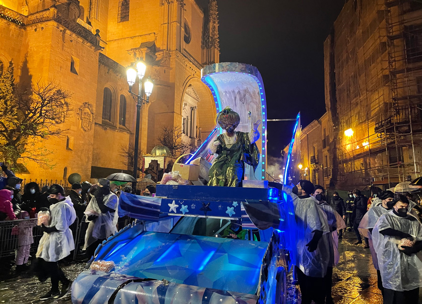 Saludos de Sus Majestades desde el escenario, a falta de la tradicional recepción a los niños que este año ha sido suprimida por culpa de la covid, y una salva de casi cinco minutos de fuegos artificiales recortados por la torre de la iglesia de Justo y Pastor, pusieron fin al espectáculo mientras niños y mayores, calados hasta los huesos, volvían a casa con los depósitos de la ilusión cargados hasta los topes.