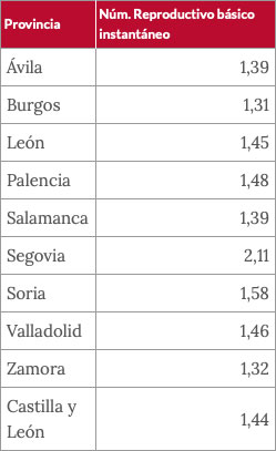 Otro dato que apunta con claridad la trayectoria ascendente emprendida por la covid en Segovia es el que aporta el Número Reproductivo Básico, un medidor que refleja la contagiosidad existente en este momento y que es sumamente negativo siempre que marque más de 1. La provincia lidera ese listado con una marca de 2,11, lo que indica que un infectado contagiará a más de dos personas y por tanto, seguirá aumentando de manera importante el número de casos nuevos en los próximos días. La media en Castilla y León es, en este momento, de 1,44.