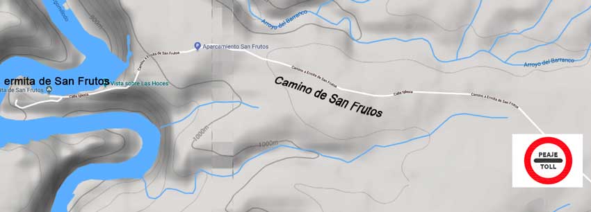 La Fundación Patrimonio Natural de Castilla y León, entidad tutelada por la Junta para la gestión del Parque Natural de las Hoces del Duratón, donde está enclavada la ermita de San Frutos, proyecta implantar un peaje para el acceso de los vehículos a la parte final del Camino de San Frutos, desde la conexión a la SG-V2418 hasta el párking en las proximidades de la ermita. Los precios previstos son de dos euros para motos, cuatro para vehículos y 10 por cada autobús.