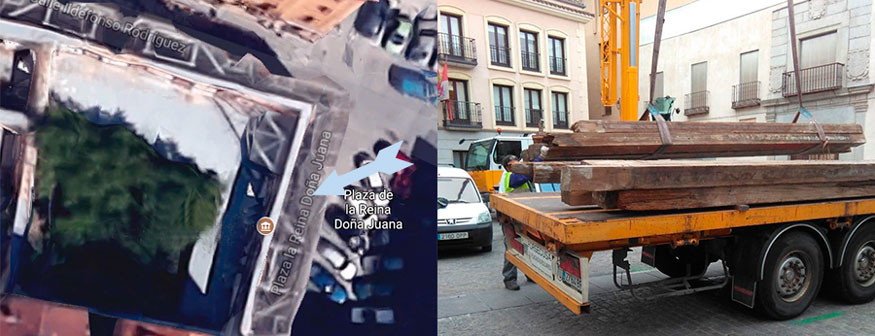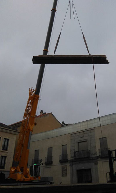 Bajo la supervisión de los conservadores del Museo de Segovia y del Servicio de Cultura de la Junta, un grupo de operarios ha retirado en la mañana del 8 de noviembre trece vigas del palacio de Enrique IV. Se trata de la vigas originales del palacio, hasta la fecha a la intemperie, y que presentaban restos de policromías entre los que aún pueden identificarse las armas de Castilla y de León. Las vigas han sido trasladadas a los almacenes que el Museo de Segovia dispone en Santa María la Real de Nieva, para su estudio y conservación, sin que existan planes para la devolución de las vigas a su emplazamiento inicial.