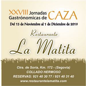 Puntual a su cita, el restaurante de Collado Hermoso (Segovia) La Matita vuelve a ofrecer sus tradicionales jornadas gastronómicas de caza. Oportunidad hasta el 1 de diciembre de degustar una completa carta de platos que combinan creatividad y tradición basados en piezas de caza y temporada de primera calidad. Van 28 ediciones que permiten recuperar el sabor de la gastronomía cinegética, codornices, liebres, jabalíes, corzos…