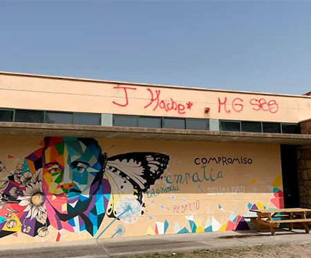 Lo mismo hay que plantear las cosas al revés. Picota Florilegio de los Ciudadanos Ejemplares. La policía felicita al menor Blasito X.X. por su creatividad -a sus 17 años con un prometedor recorrido por delante- en la decoración espontánea del centro cultural. Gracias. Blasito la policía te quiere.