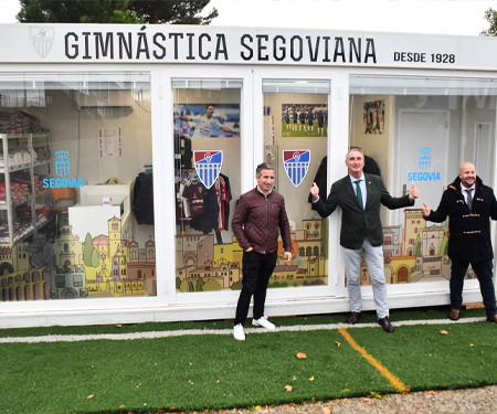 La imagen del club, también se va a ver reforzada con el nuevo espacio para las comparecencias de prensa. Se trata también de un módulo prefabricado que ha sido adquirido en propiedad por la Gimnástica Segoviana. Este se va a situar en la puerta B de acceso al campo. Este nuevo espacio, venía siendo desde hace tiempo, una de las mejoras que los actuales gestores querían acometer para favorecer el trabajo de los medios de comunicación que habitualmente cubren las actividades deportivas. La nueva sala contará con el patrocinio de Coca Cola cuyo logotipo lucirá en el exterior de la sala.