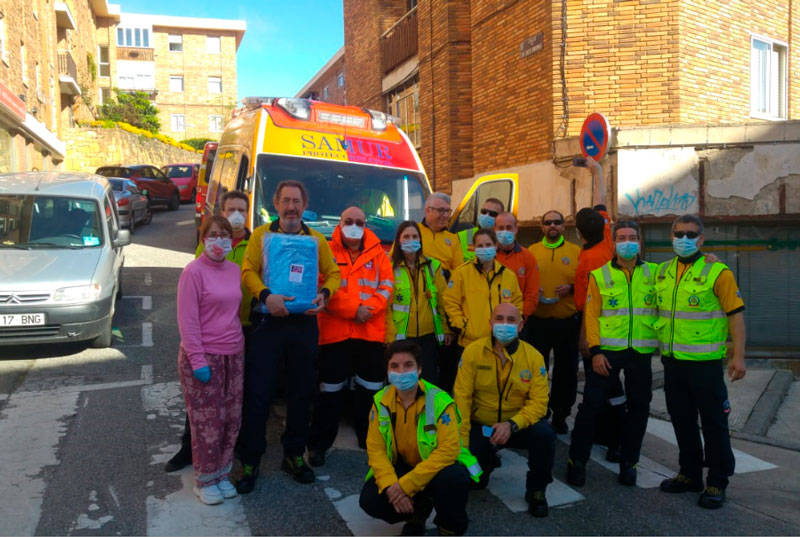 Una entrega de batas del Batallón de Costura a efectivos del Samur en abril de 2020.