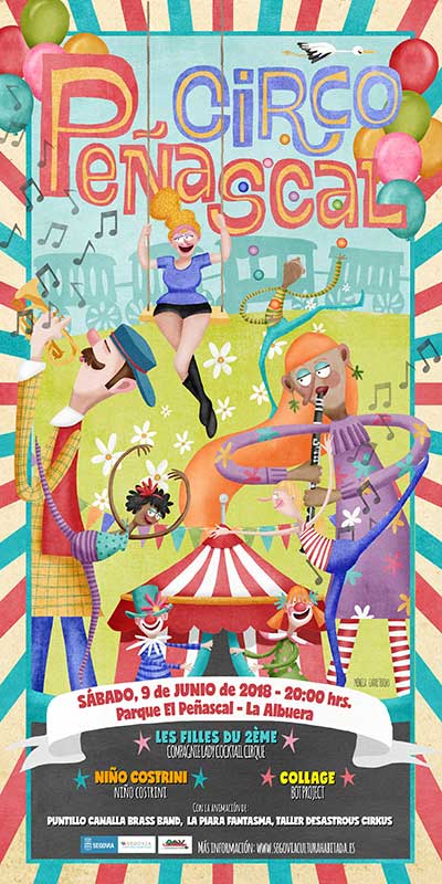 La animación musical de Puntillo Canalla Brass Band contribuirá a hacer el ambiente aún más festivo. También los cochinillos de La piara fantasma, personalizados por artistas de Segovia, una manada que cuenta con un nuevo miembro, el decorado con su color azul característico por Lucía Bosé.