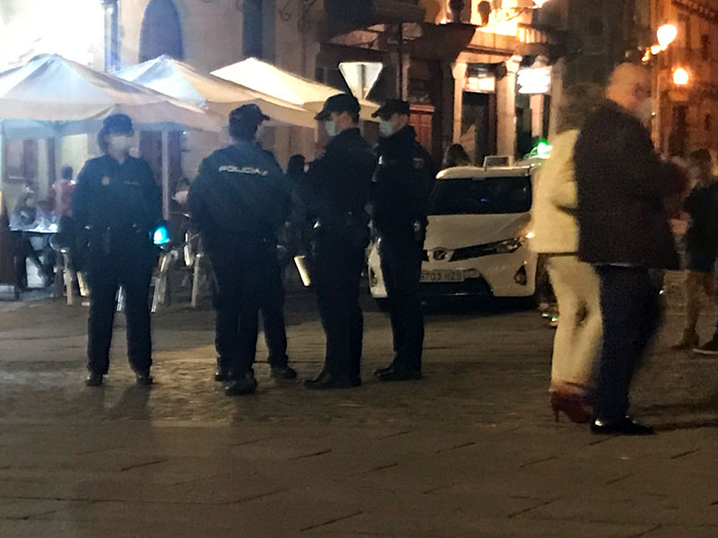 Decenas de policías nacionales y locales se desplegaron este 31 de octubre en la plaza Mayor y las calles aledañas en prevención de que se produjeran disturbios provocados por los asistentes a una protesta contra las medidas de restricción de movimientos y toque de queda que había sido convocada a través de las redes sociales. Al final, la protesta fue minoritaria, con algo más de dos decenas de participantes y totalmente pacífica, en una plaza Mayor atestada de ciudadanos que ocupaban las terrazas de los bares.