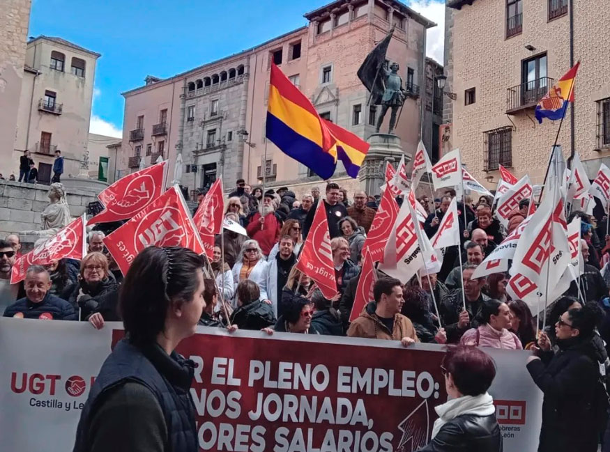 Los sindicatos verticales del Régimen sanchista cobran 300 millones de euros de dinero público, de nuestros impuestos, al año para sus “gastos” y para callar y no defender a los trabajadores y hacerlos más pobres y temporales. Ayer hicieron su acto de apoyo al dictador Sánchez, con la presencia de todos los miembros de la cúpula del Movimiento socialista para controlar el acto. Hemos vuelto a una dictadura. Hasta con nueva bandera, la republicana que garantiza otra Guerra Civil, la III. Y luego a las mariscadas todos.