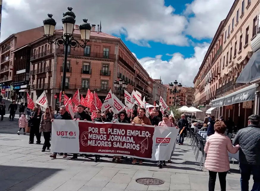 Los sindicatos CCOO y UGT convocaron a centenares de trabajadores (500 personas según la subdelegación de Gobierno) a la tradicional manifestación conjunta para este Primero de Mayo. Con el trabajo de los convenios provinciales bien encauzados en la provincia, el énfasis está en secundar el objetivo a nivel nacional de conseguir una rebaja de la jornada laboral. Para este año, bajar a 37,5 horas la jornada semanal en los colectivos que todavía la tienen a 40 horas. Con los niveles de empleo en buena forma, el otro reto es más coyuntural, conseguir una mayor tasa de contratación fija a jornada completa.