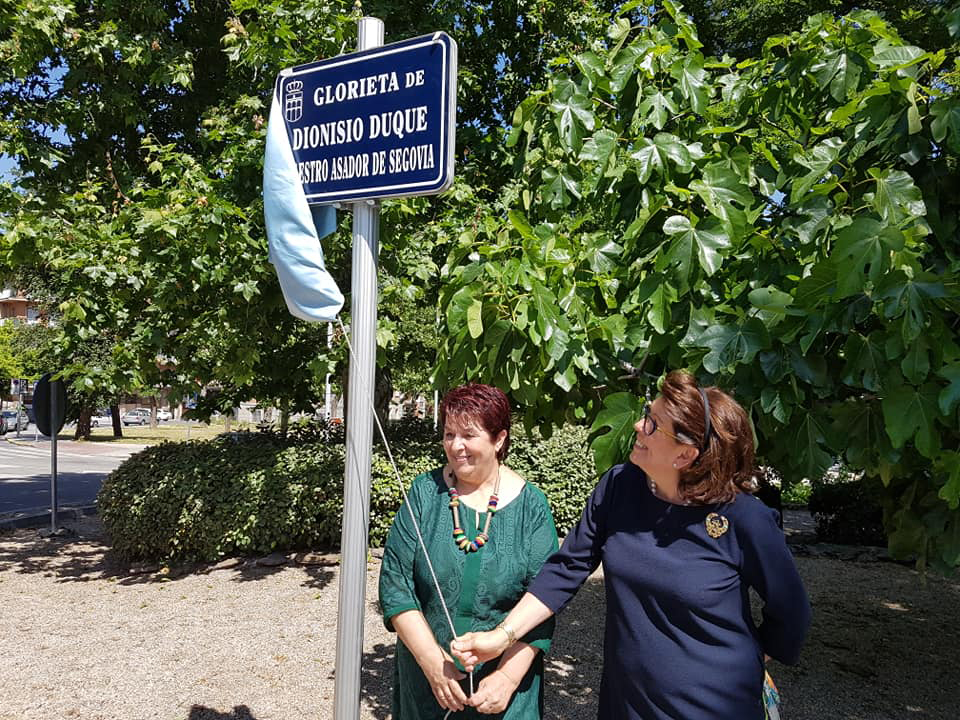Por mandato del ayuntamiento de Segovia de 2016, se imponía el nombre de Dionisio Duque, maestro asador a la glorieta de la confluencia de las calles San Gabriel, Soldado Español, Bomberos y avenida Padre Claret. Agradezco de forma especial al Ayuntamiento de Segovia que el nombre de mi padre pase a formar parte del callejero de la ciudad; una Segovia que él tanto amó y que llevaba por bandera a cualquier sitio donde iba”, afirmaba esta mañana una orgullosa Marisa Duque, hija y continuadora del legado del Maestro Asador Dionisio Duque