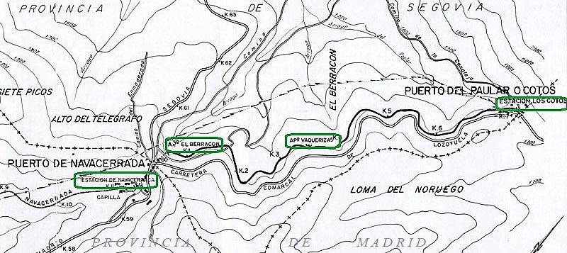 (Desde los Cotos, la línea debe, en el futuro, extenderse unos veinte kilómetros para unirse a la nueva línea en construcción por R.E.N.F.E. de Madrid a Irún por Burgos)