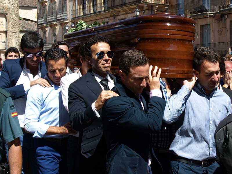 El cadáver de Víctor Barrio fue incinerado en un acto al que ya sólo acudió la familia y los amigos más próximos, mientras que la villa sepulvedana permanece de luto, decretado por su Corporación, a la que pertenece la viuda del torero, Raquel Sanz.