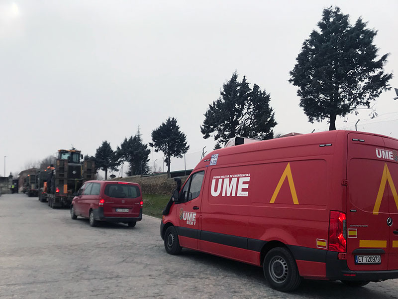 Un destacamento de la Unidad Militar de Emergencias (UME) procedente del Quinto Batallón de Intervención de Emergencias, con base en León ha llegado a Segovia en torno a las 14.00 horas de este 8 de enero como eventual refuerzo de los servicios de emergencia locales, de todas las administraciones, en prevención de los efectos que pueda provocar la llegada de la borrasca Filomena a la provincia, esta misma tarde según las predicciones meteorológicas.
