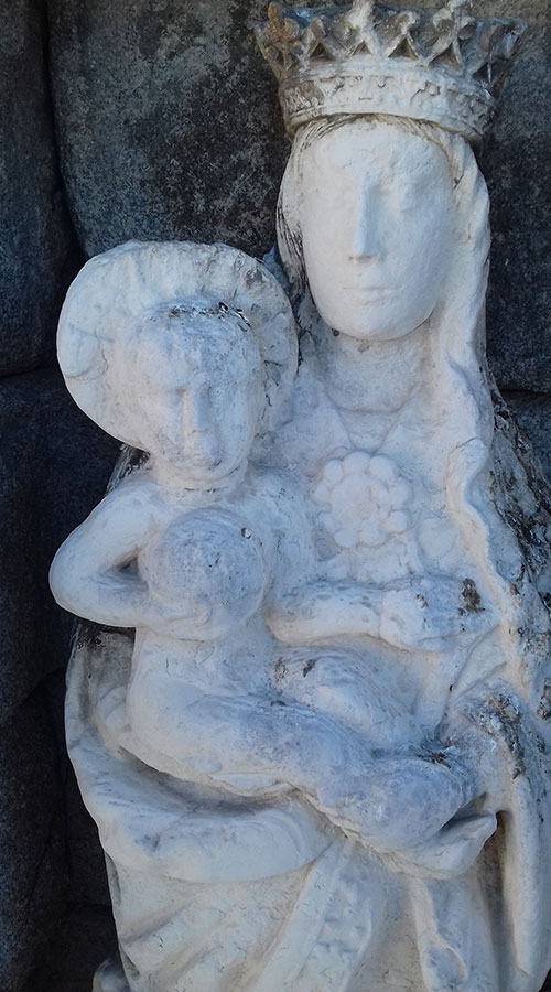 Hace 500 años, un devoto segoviano, Antonio de la Jardina, ensayador de la Casa de la Moneda, costeó y puso la imagen de Nuestra Señora en el hueco situado en lo alto Acueducto y la de San Sebastián (de madera) en el nicho de la cara norte.