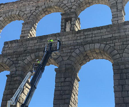 El 19 de marzo de 2019 se procedió a la retirada de la imagen de la Virgen del Acueducto para comenzar así el trabajo de restauración de la escultura de caliza. Una operación complicada al tener que mover 1.200 kilos en un espacio reducido con poca capacidad de maniobra a más de 20 metros de altura y con el Acueducto de fondo. La imagen no estaba anclada al fondo de la hornacina, únicamente estaba sujeta en la base del mortero que tenía a los pies, y su propio peso de más de una tonelada era lo que le facilitaba y daba estabilidad.