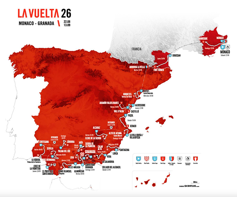 El trazado de 2026 concentrará buena parte de sus etapas en la costa valenciana y andaluza, con un diseño que prioriza recorridos de media montaña y etapas costeras frente a los grandes bloques montañosos del norte peninsular. La carrera arrancará en Mónaco y atravesará los Pirineos con un perfil moderado, antes de dirigirse hacia el sur.