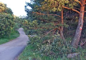 Una vez en la pista la seguiremos a derecha hasta un ensanche en que nos recibe una pequeña charca vallada con incipientes plantaciones. El camino gira a la izquierda en suave ascenso. Para los seguidores del mapa Instituto Geográfico Nacional -Hoja Segovia 583-, estamos en el denominado Pinar de Gonzalo.