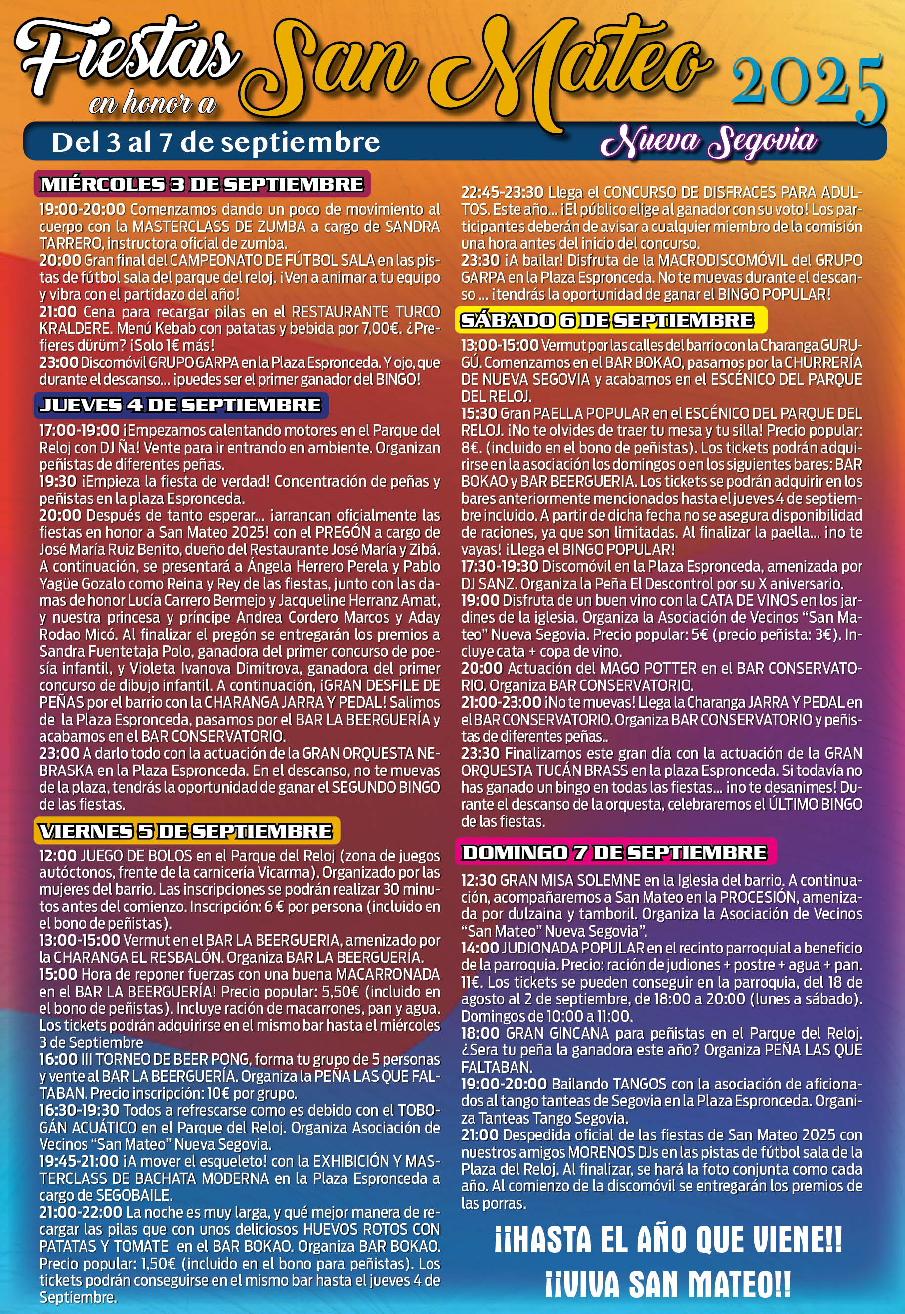 El barrio de Nueva Segovia ya cuenta los días para dar comienzo a sus fiestas en honor a San Mateo, que se celebrarán del 3 al 7 de septiembre con una amplia programación pensada para todas las edades.