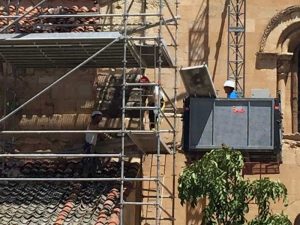 Dotadas con 93.000, las obras de San Millán corren por cuenta de la Junta de Castilla y León, a solicitud de la diócesis y para completar la renovación de la techumbre del monumento segoviano. “Durante varios años, y a partir de recursos parroquiales, hemos ido renovando la techumbre. Hace dos años se nos aprobó un proyecto para terminar la obra. En 2016 no entró en presupuestos pero en 2017 sí”, explica Montero. Las obras empezaron en junio y la Junta tenía previsto acabarlas en tres meses. Anteriormente los trabajos de renovación de la techumbre se acometieron con normalidad, sin distorsiones por la presencia de aves.