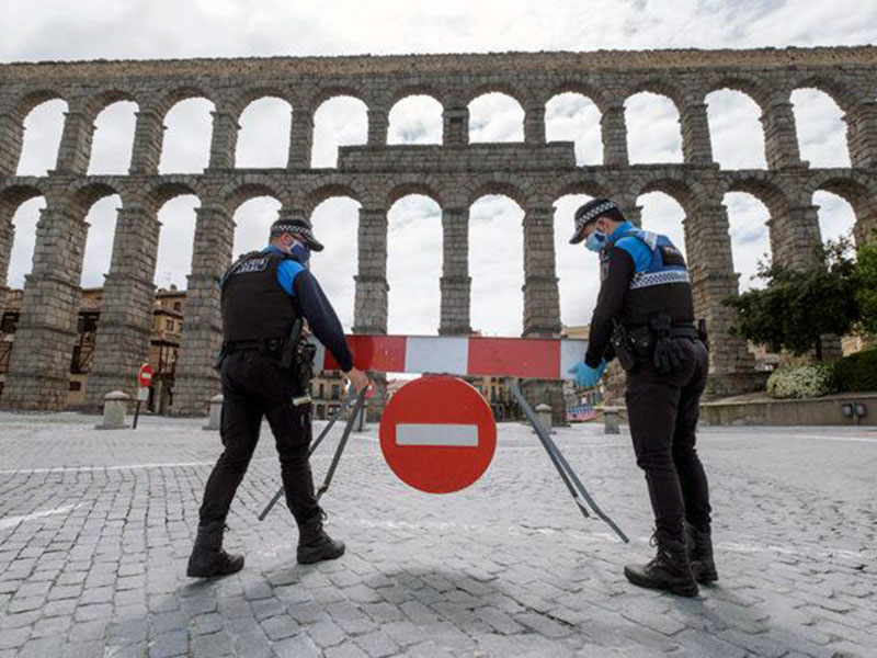 Dos agentes con una señal de prohibición en una imagen de archivo.