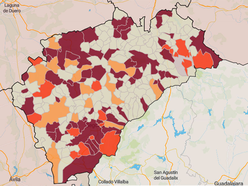 Las tasas de incidencia de la covid siguen cayendo en la provincia de Segovia, donde ya son mayoría los pueblos que han regresado a la situación de “nueva normalidad” (tasas por debajo de 50 casos por cada 100.000 habitantes) si bien, los municipios con mayores concentraciones de población se mantienen en situación de riesgo “muy alto”, por encima de los 500 caos. Segovia (647), Cuéllar (634), Palazuelos de Eresma (607 casos), El Espinar (569) o Sepúlveda, con una altísima tasa de 1.722 casos por cada 100.000 habitantes, son los núcleos destacados por la parte alta.