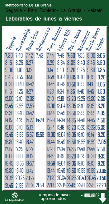 La Línea Metropolitana M8. De Segovia al Real Sitio de San Ildefonso, con salida en Segovia y fin de trayecto en Valsaín, efectúa paradas en recorrido urbano, El Carrascalejo, Peñas del Erizo, Quitapesares, Parque Robledo, Fábrica SGD, Puerta de la Reina, Pradera de Navalhorno, Barrio Nuevo y Valsaín (y a la inversa). Laborables de lunes a viernes y servicio sábados, domingos y festivos. Esta línea dependía de la concesión principal Segovia-Madrid, pero al ser de tramo autonómico pasó a desgajarse del paquete inicial para convertirse en concesión de Fomento de la Junta de Castilla y León. Ya con ocasión de la caducidad de la concesión a Madrid, Fomento decidió asignar provisionalmente el servicio a Linecar, si bien un recurso de La Sepulvedana paralizó el cambio. Se iniciaron entonces complejas conversaciones entre ambos grupos, que no han cuajado hasta hoy.